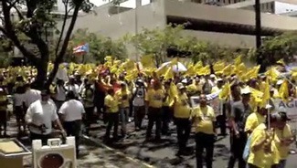 El primero de Mayo las uniones de trabajadores, la Universida de Puerto Rico, y la Escuela de Artes Plasticas de San Juan, se tirararon a la calle en una protesta masiva contra el gobierno de Puerto Rico y la Ley #7 . La marcha fue en Hato Rey en el distrito economico del pais.