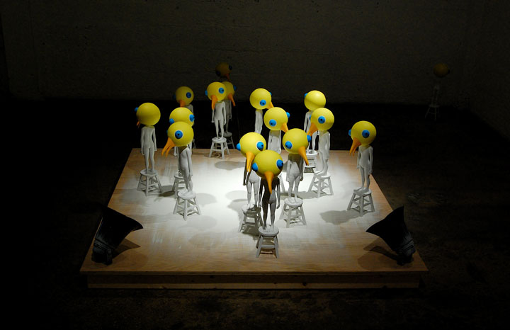 We loved this show with it’s little sculptures and larger work of the same small works, the painting where rather strange in atmosphere a little to slick but did work well with the layout of the space thanx Joyce Ho.